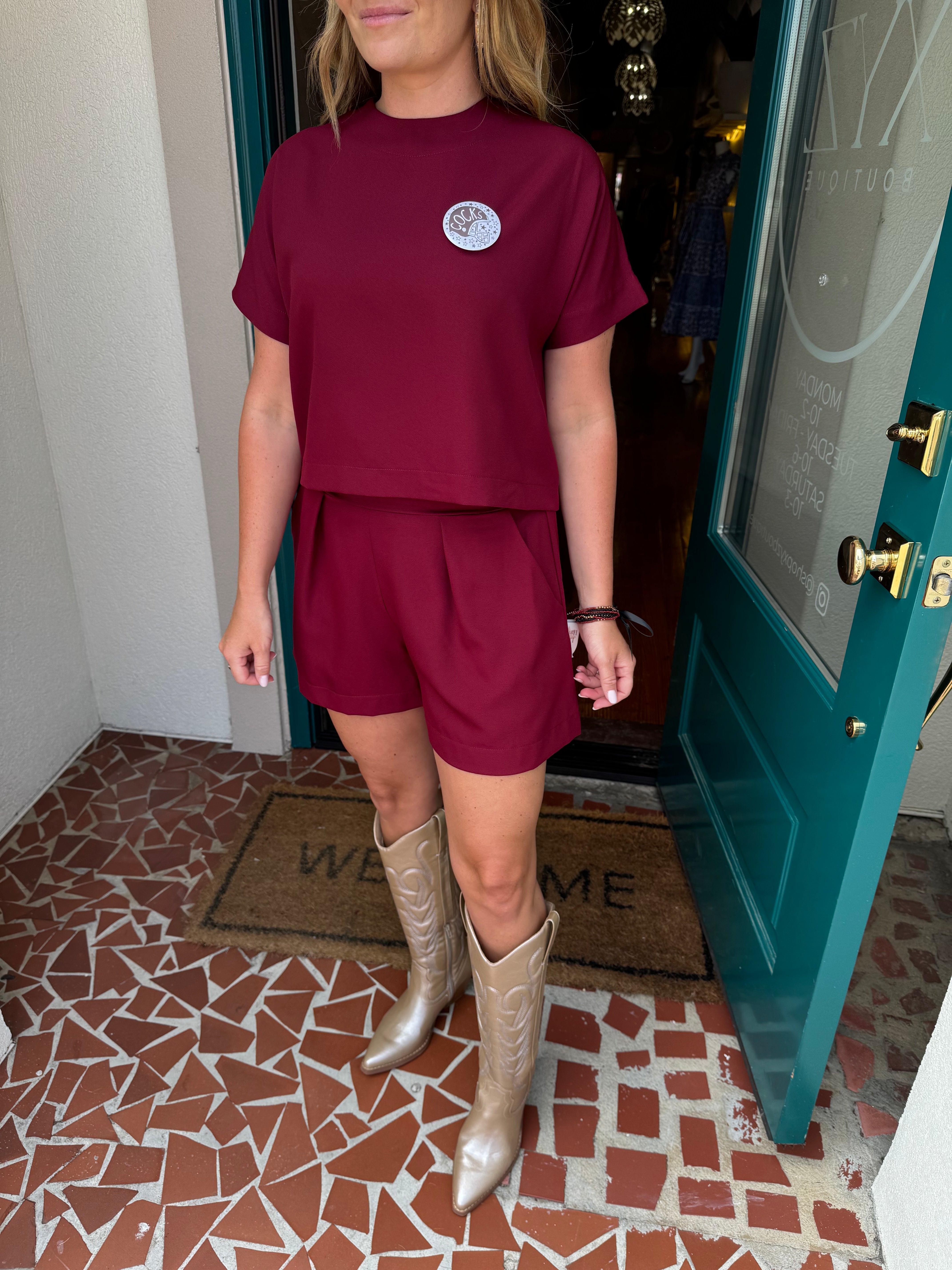 Solid Burgundy Short Sleeve Shorts SETI