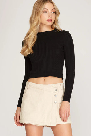 Faded Denim Front Wrap Panel Rise Waist Skort