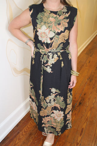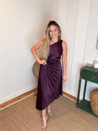 Olive Solid Sleeveless Slit Hem Pleated Midi Dress