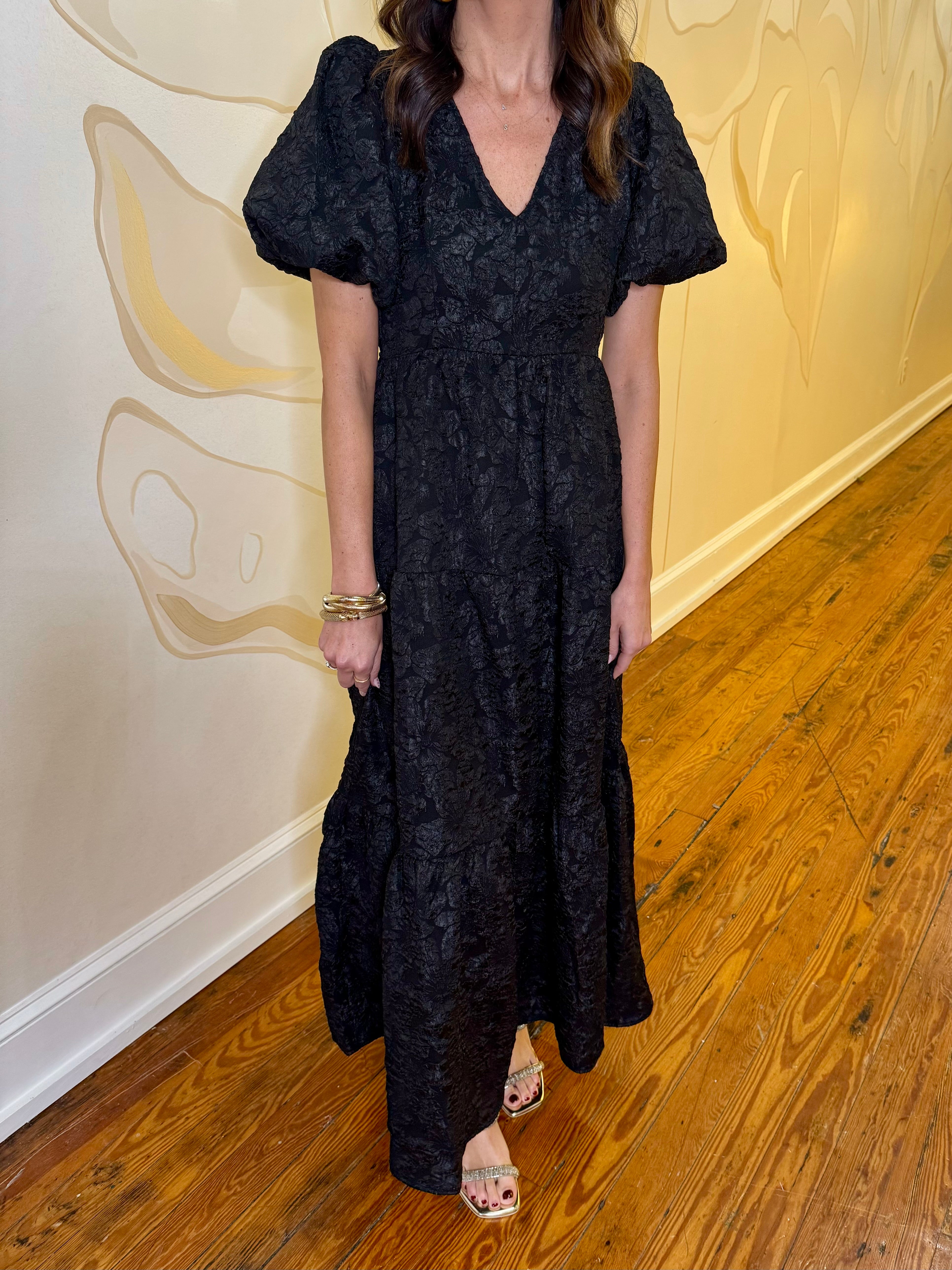 Black Arielle Jacquard Maxi Tiered Dress