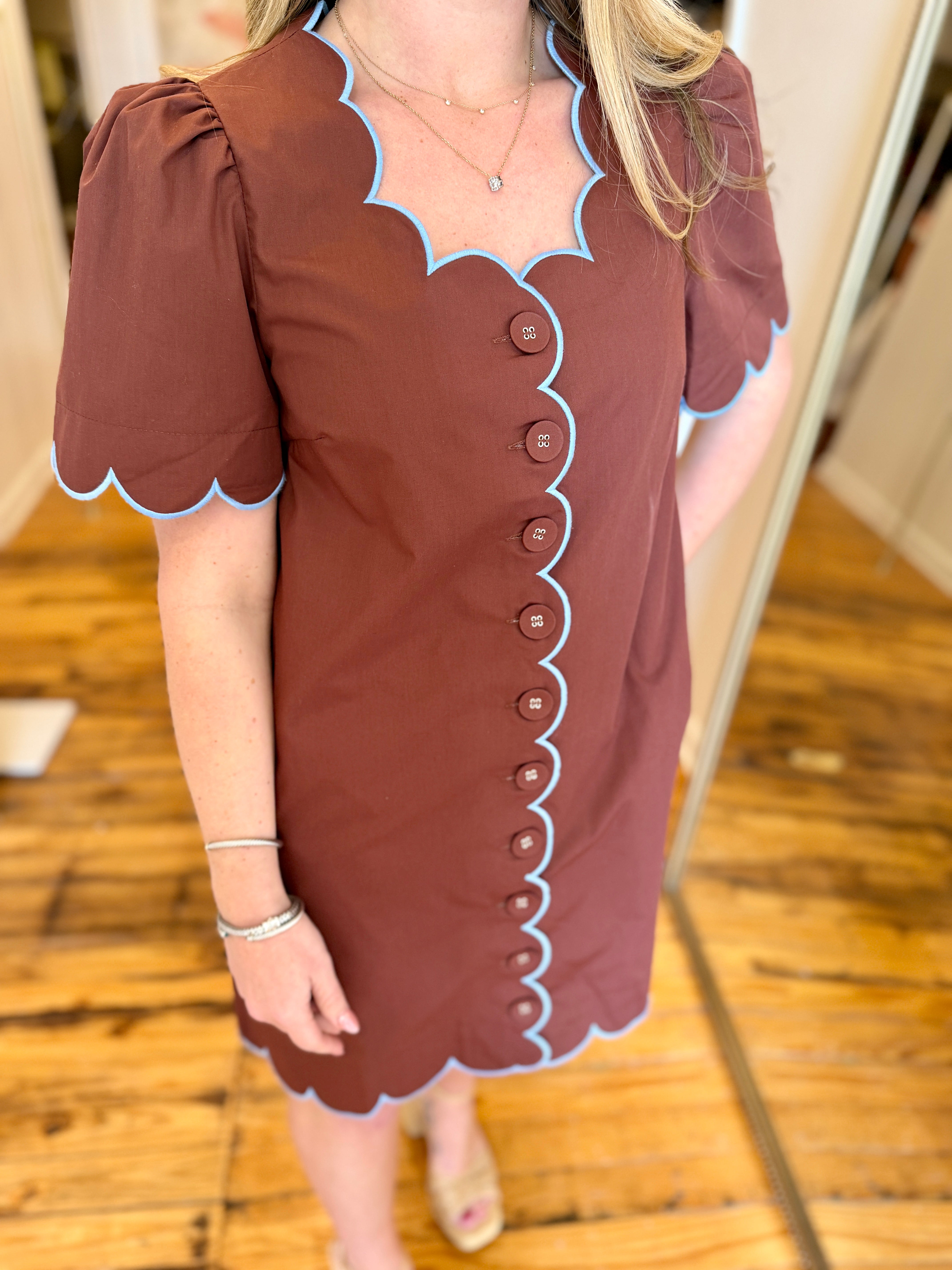 Brown and Blue Contrast Trim Dress