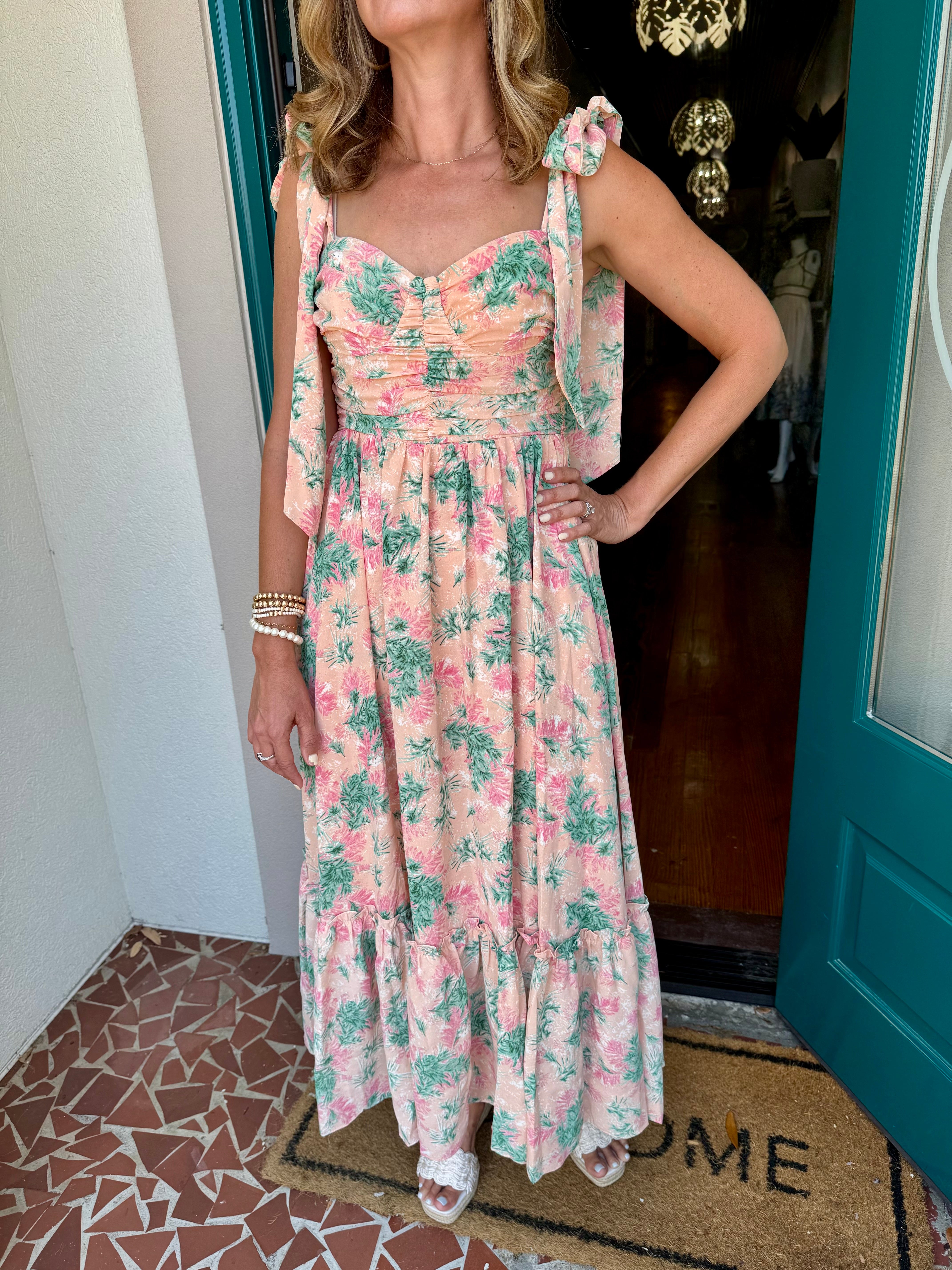 Floral Ribbon Tie Maxi Dress