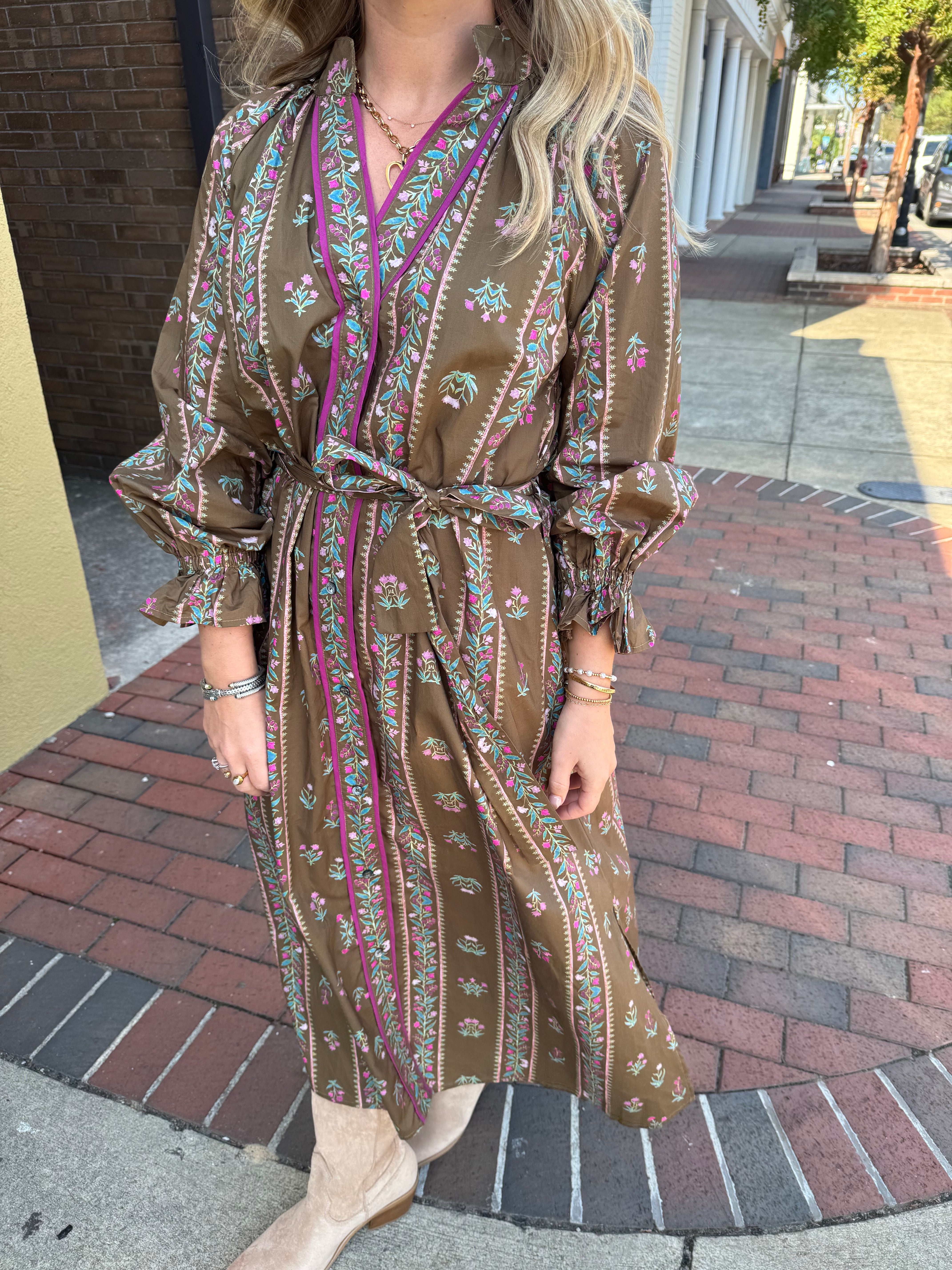 Mix Floral Stripe Maxi Dress