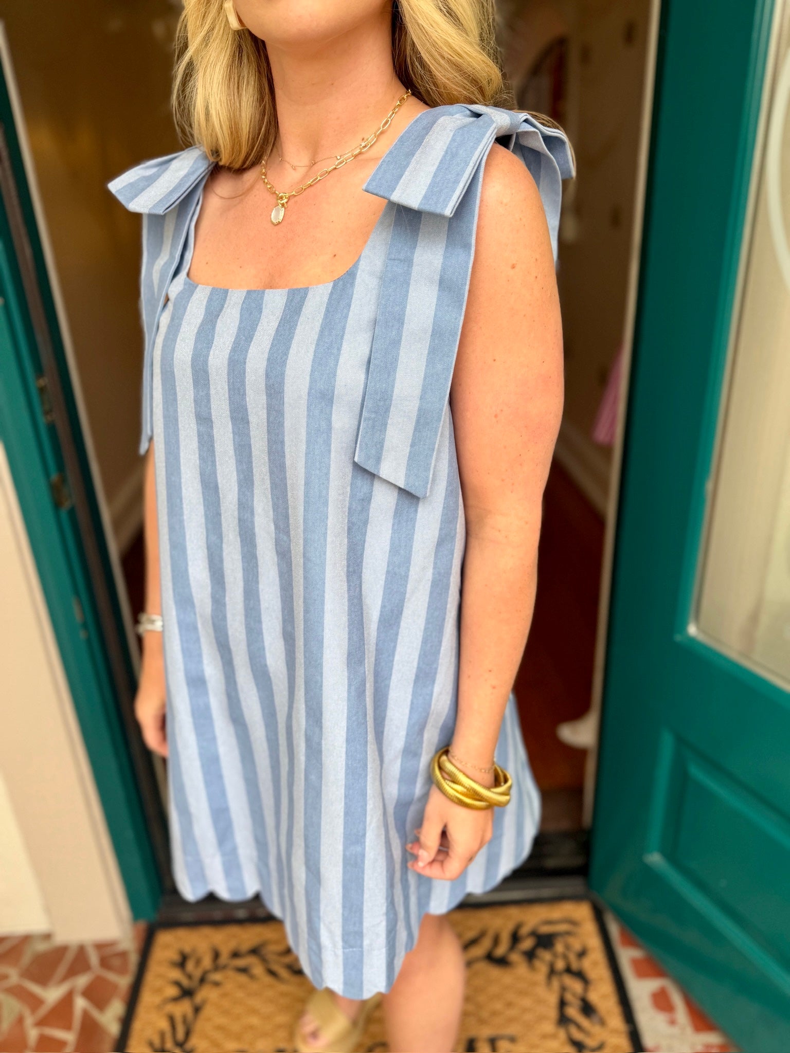 Scoop Neck Bow Shoulder Scallop Mini Dress