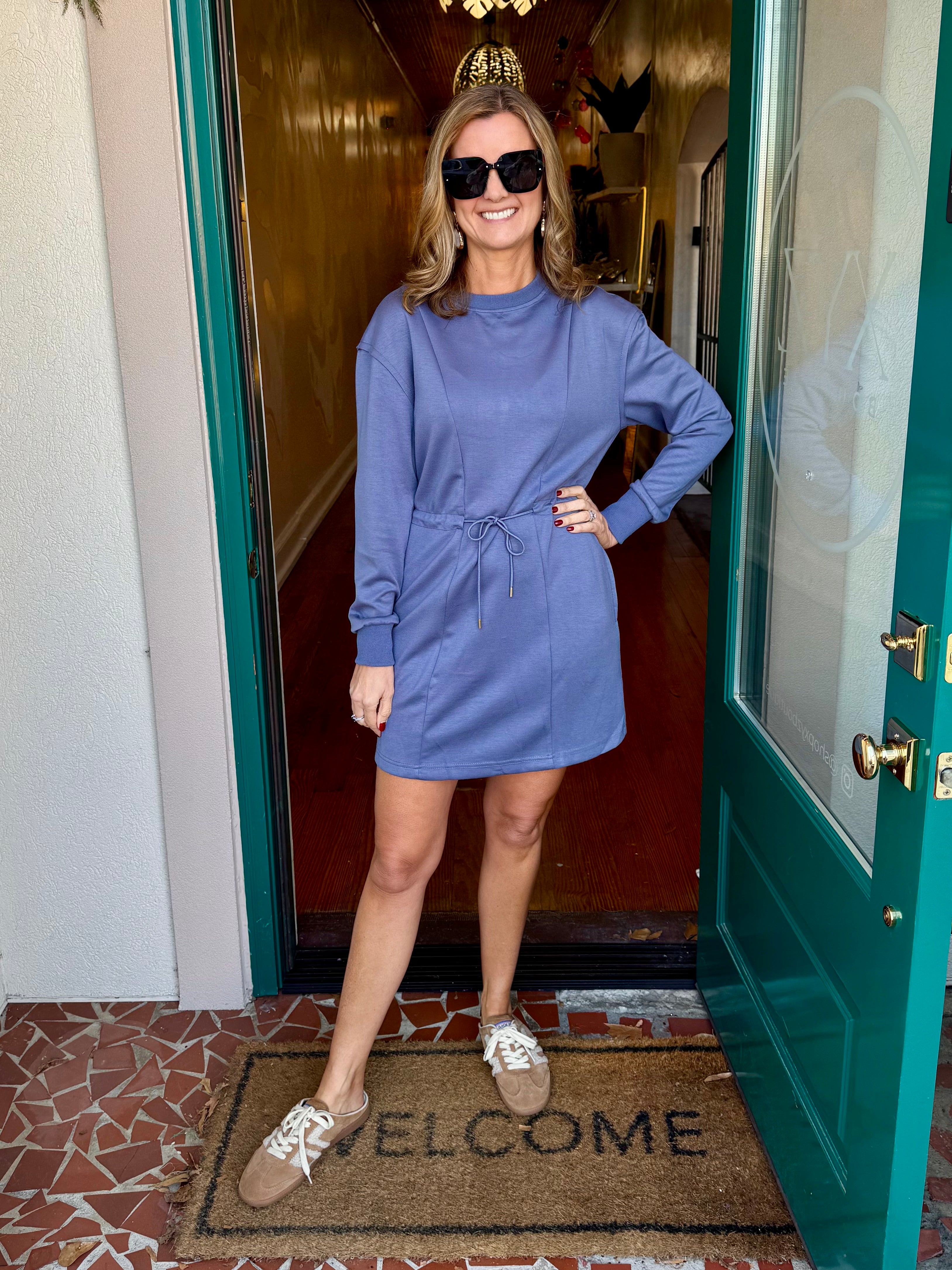 Slate Blue Waist Tie Dress