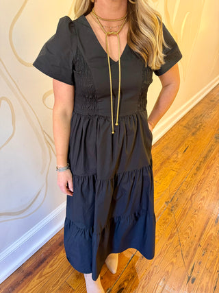 Smocked Bodice Tie Shoulder Strap Maxi Dress