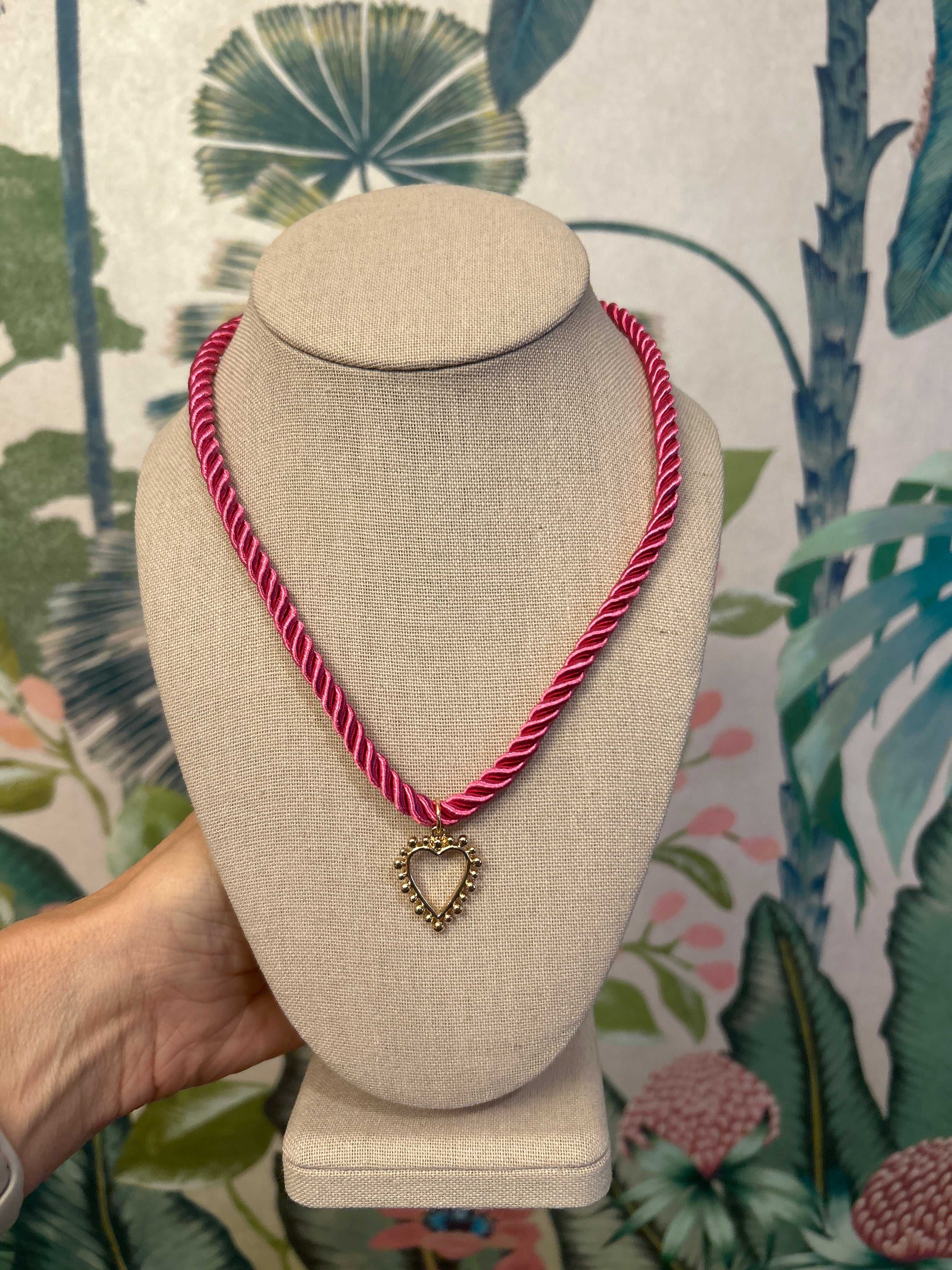 Pink Cord Heart Pendant Necklace