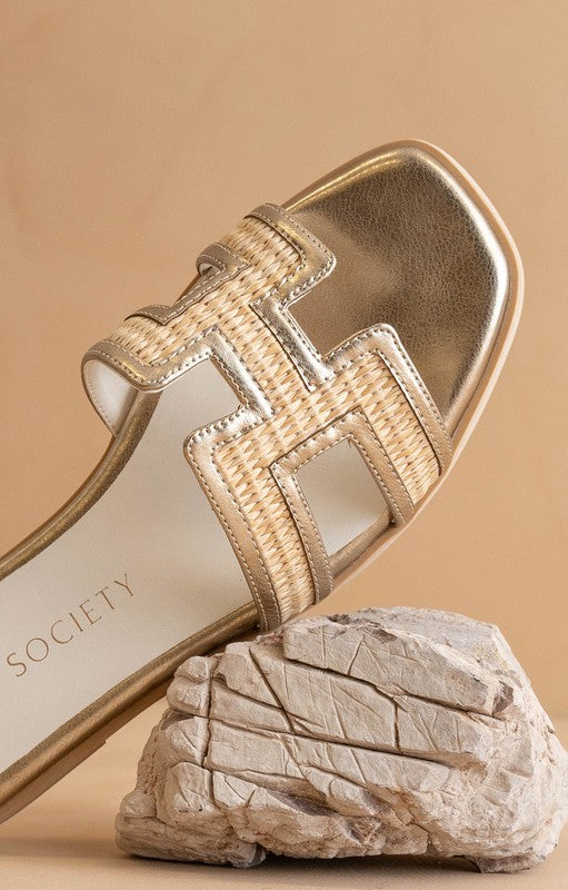 Gold Ena Cutout Raffia Sandal