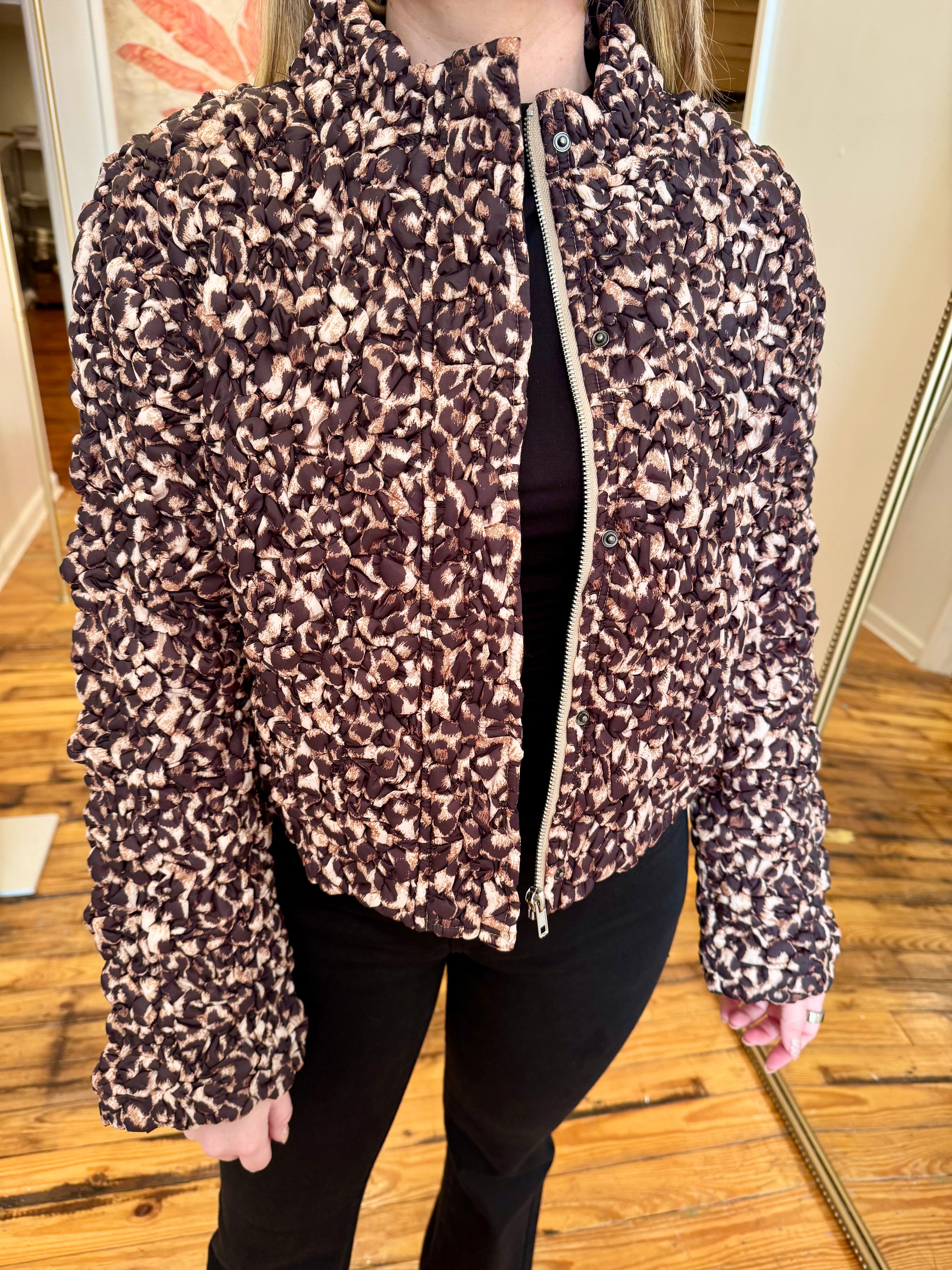Brown Leopard Quilting Puffed Jacket