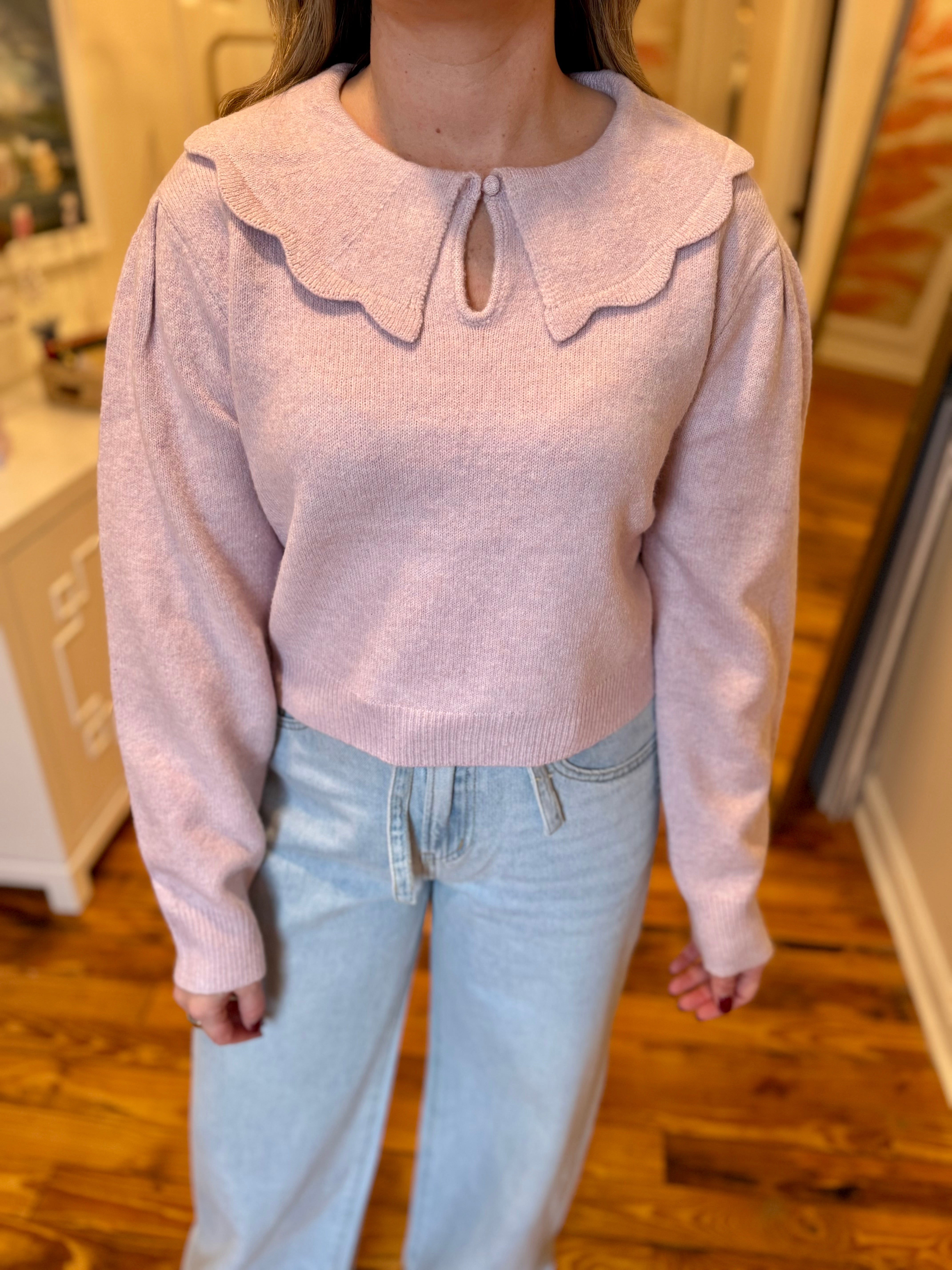 Lavender Solid Scallop Hem Peter Pan Collar Knit Sweater