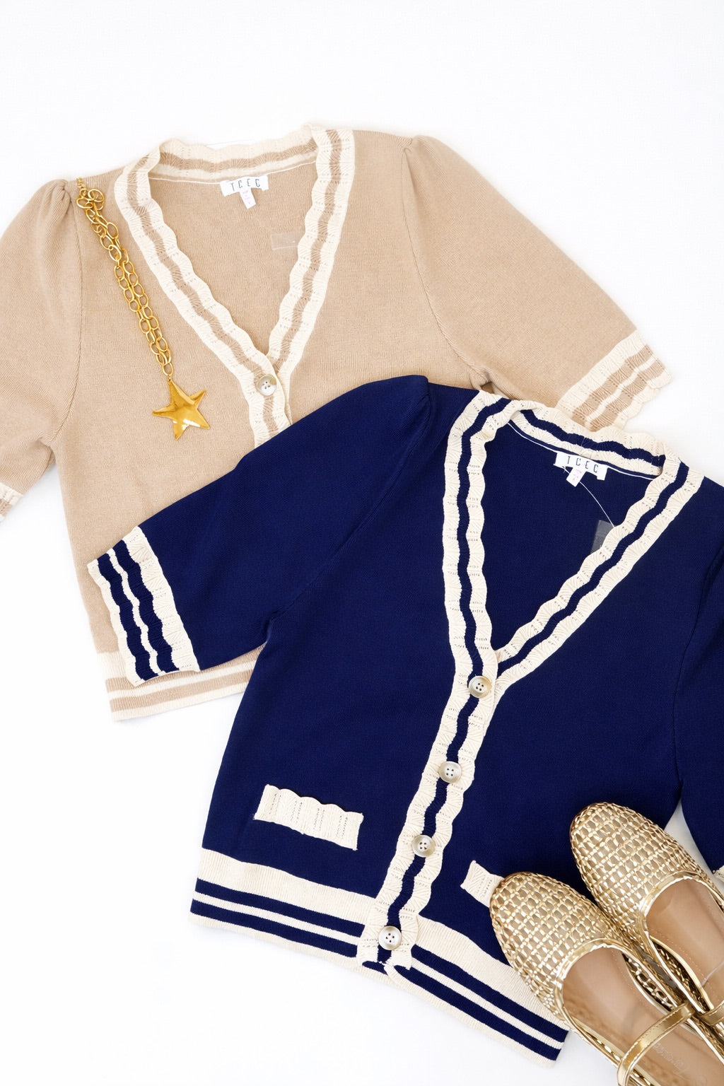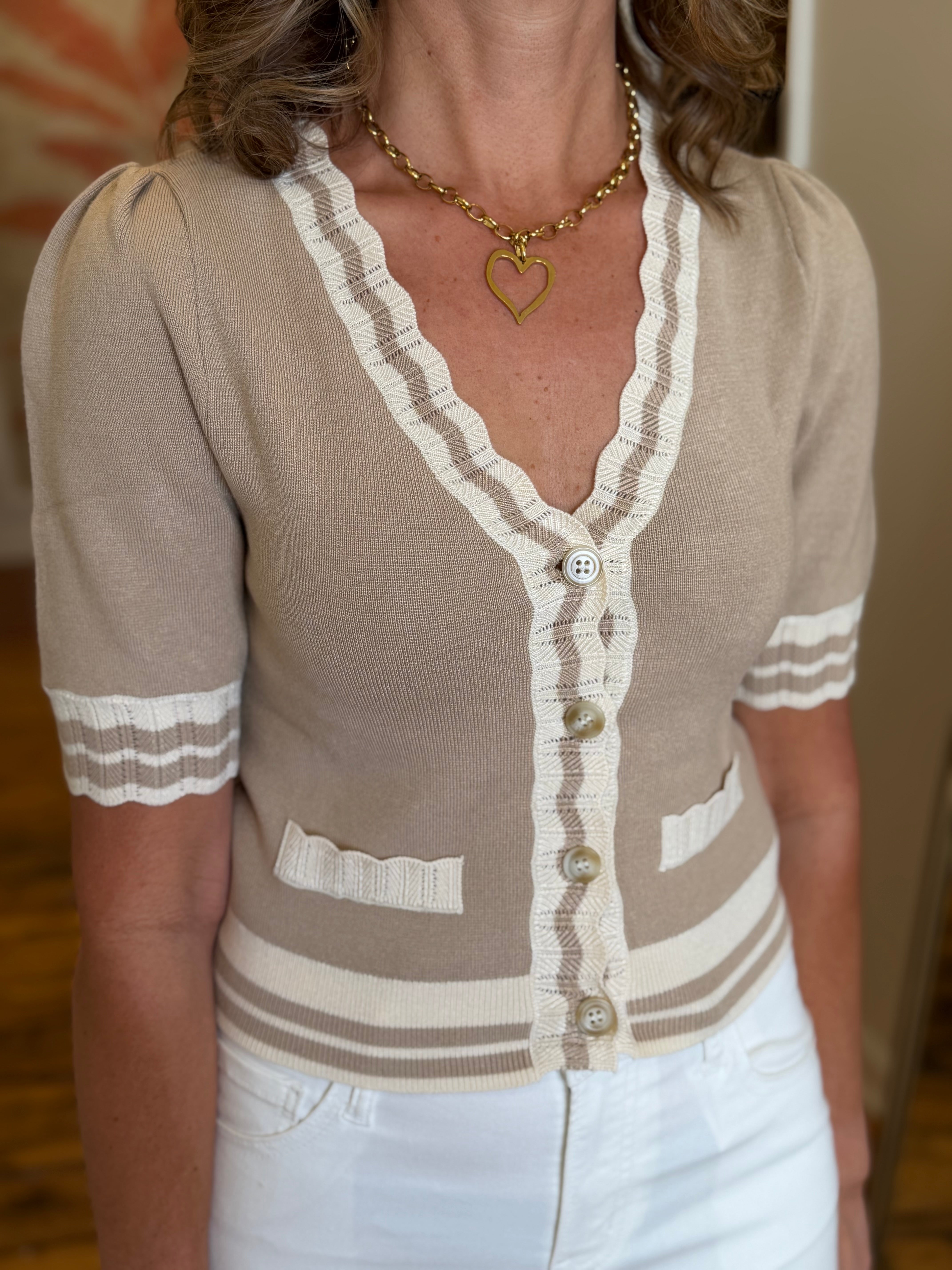 Short Sleeve Scalloped Neckline Knit Cardigan