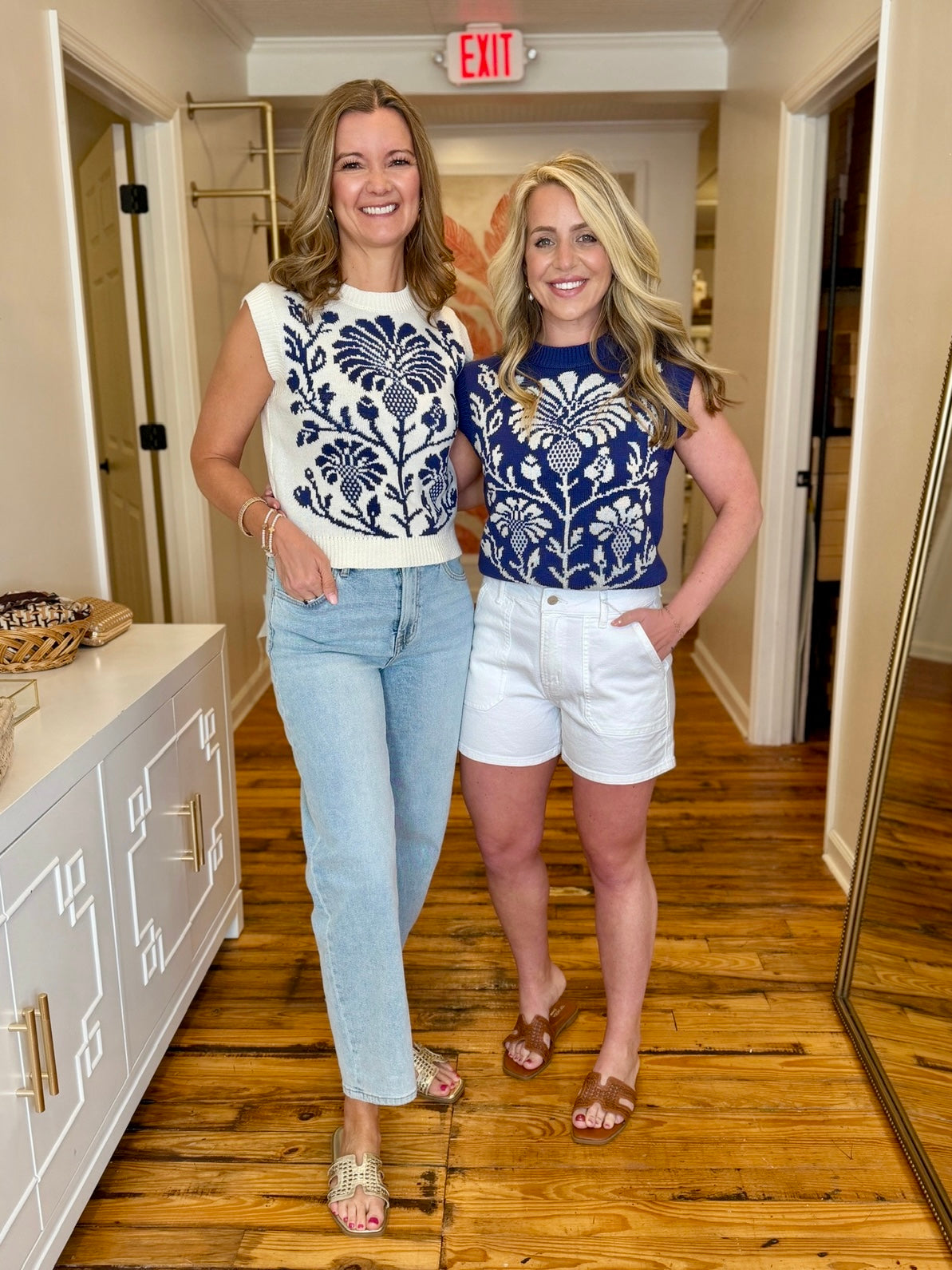 SLEEVELESS CREW NECK FLORAL SWEATER TOP