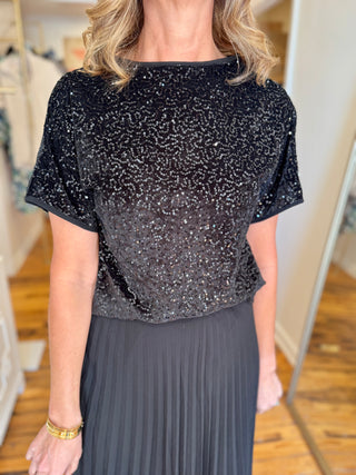Black Long Sleeve Sweater with Sequin Neckline