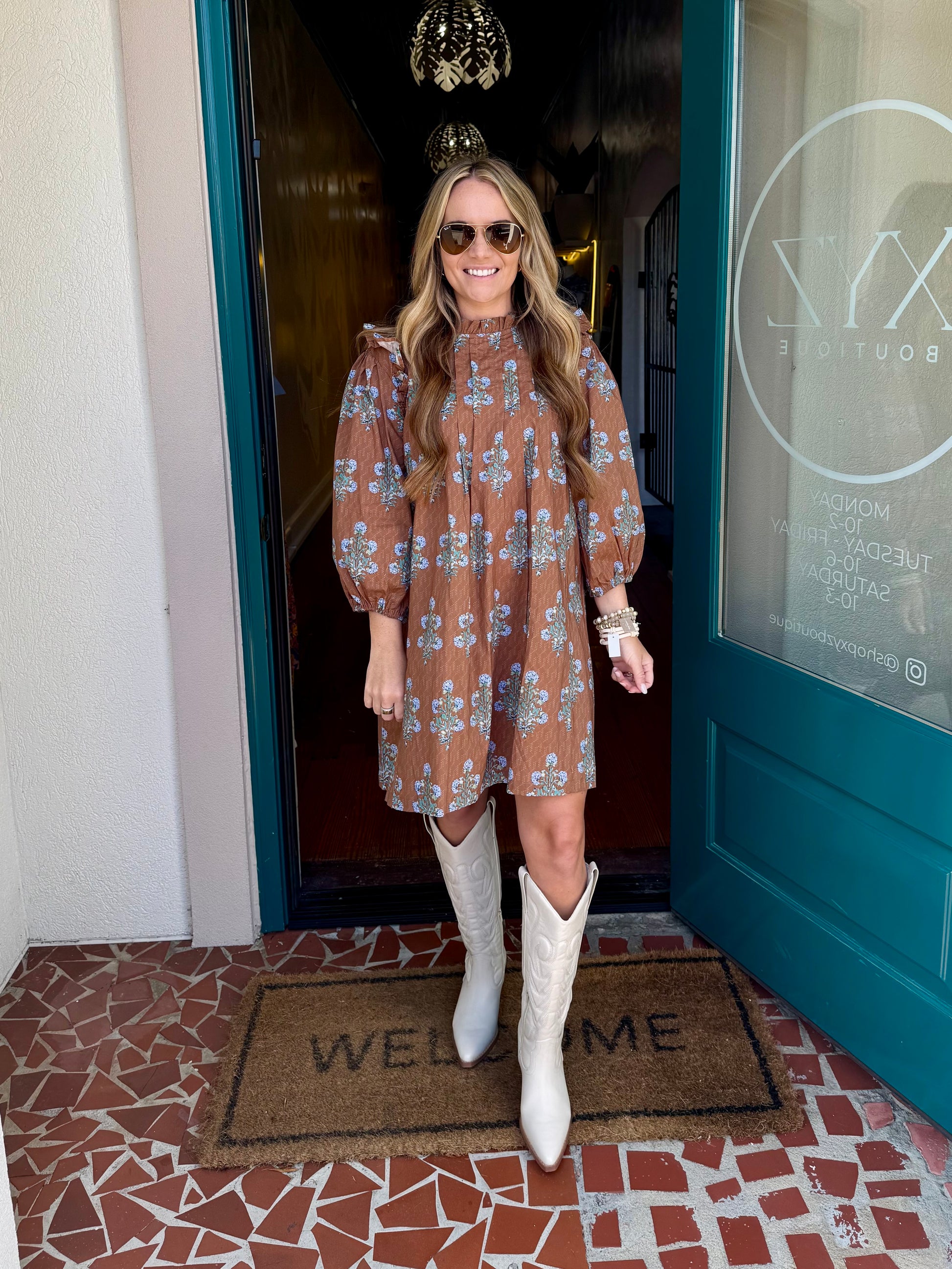 Brown Floral Ruffle Babydoll Dress