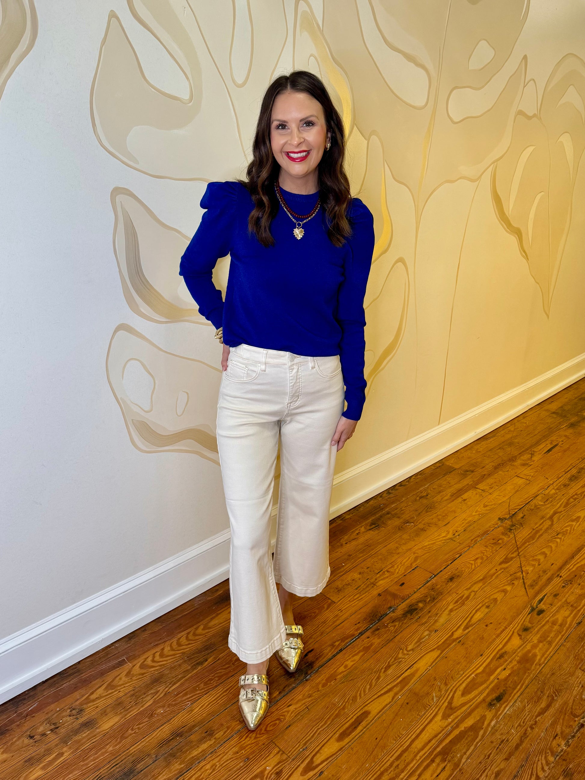 + Classic crew neckline pullover + Gathered puff long sleeves + Ribbed edges + Super soft