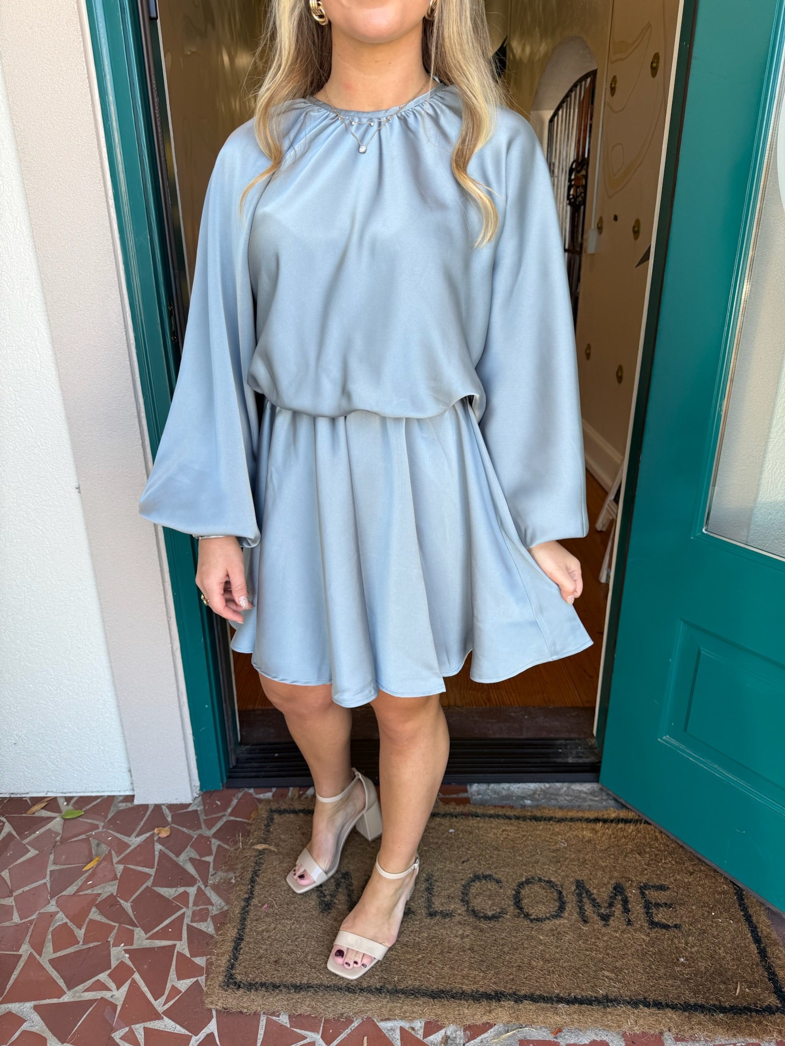 Dusty Blue Long Sleeve Flowing Dress