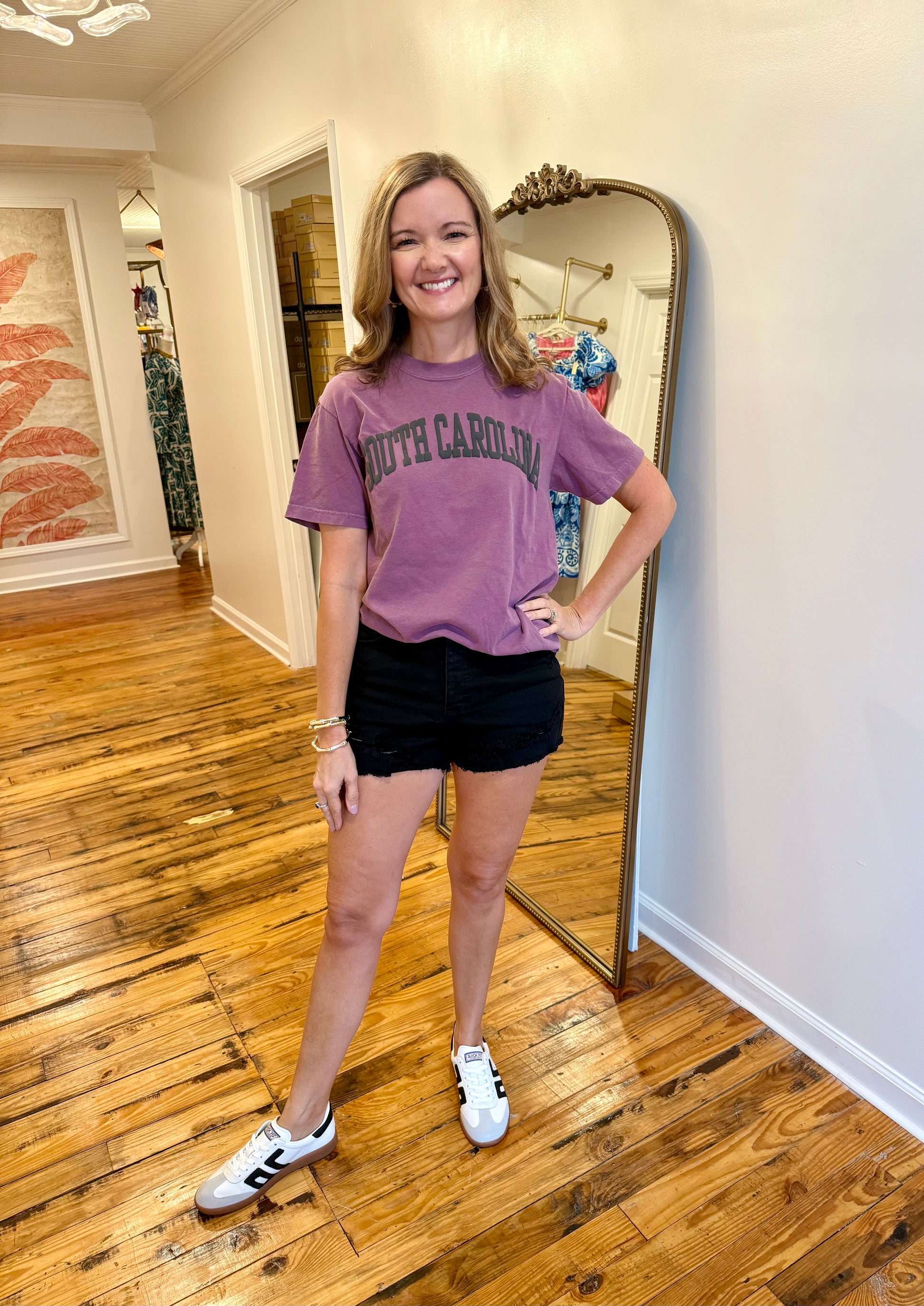 High Rise Distressed Raw Hem Denim Shorts Rise - 11.5" Inseam - 2.5"