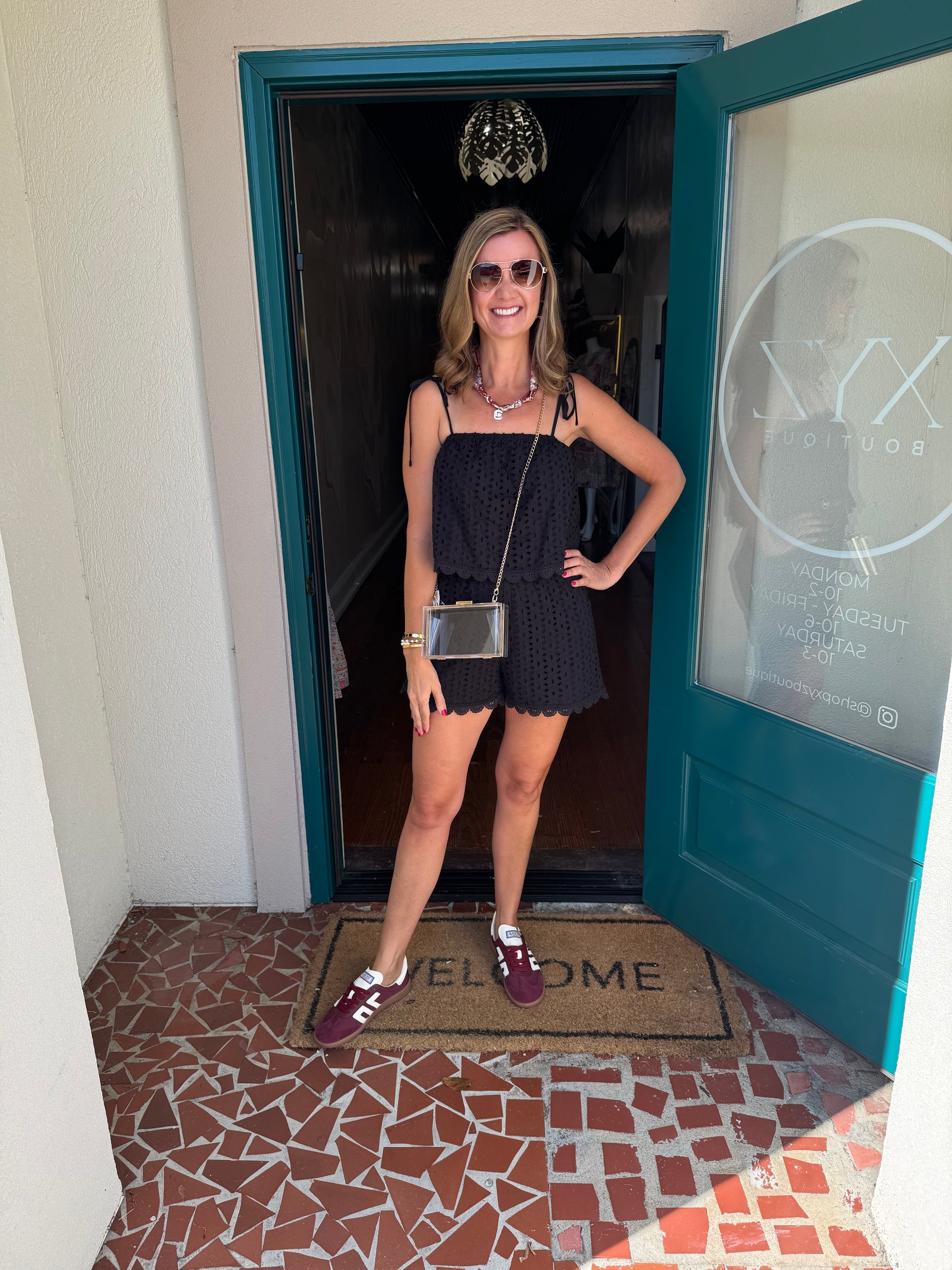 Floral Eyelet Lace Summer Tie Shoulder Set
