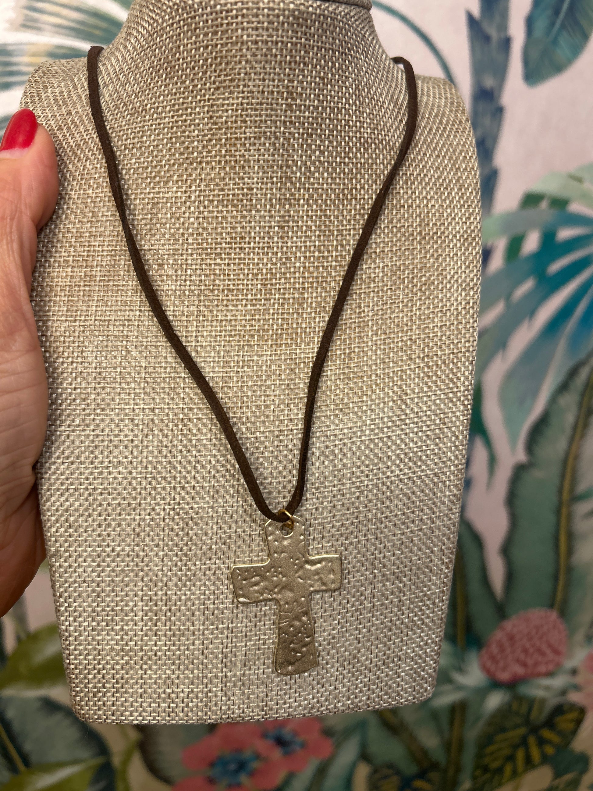 Gold Cross Leather Tie Necklace