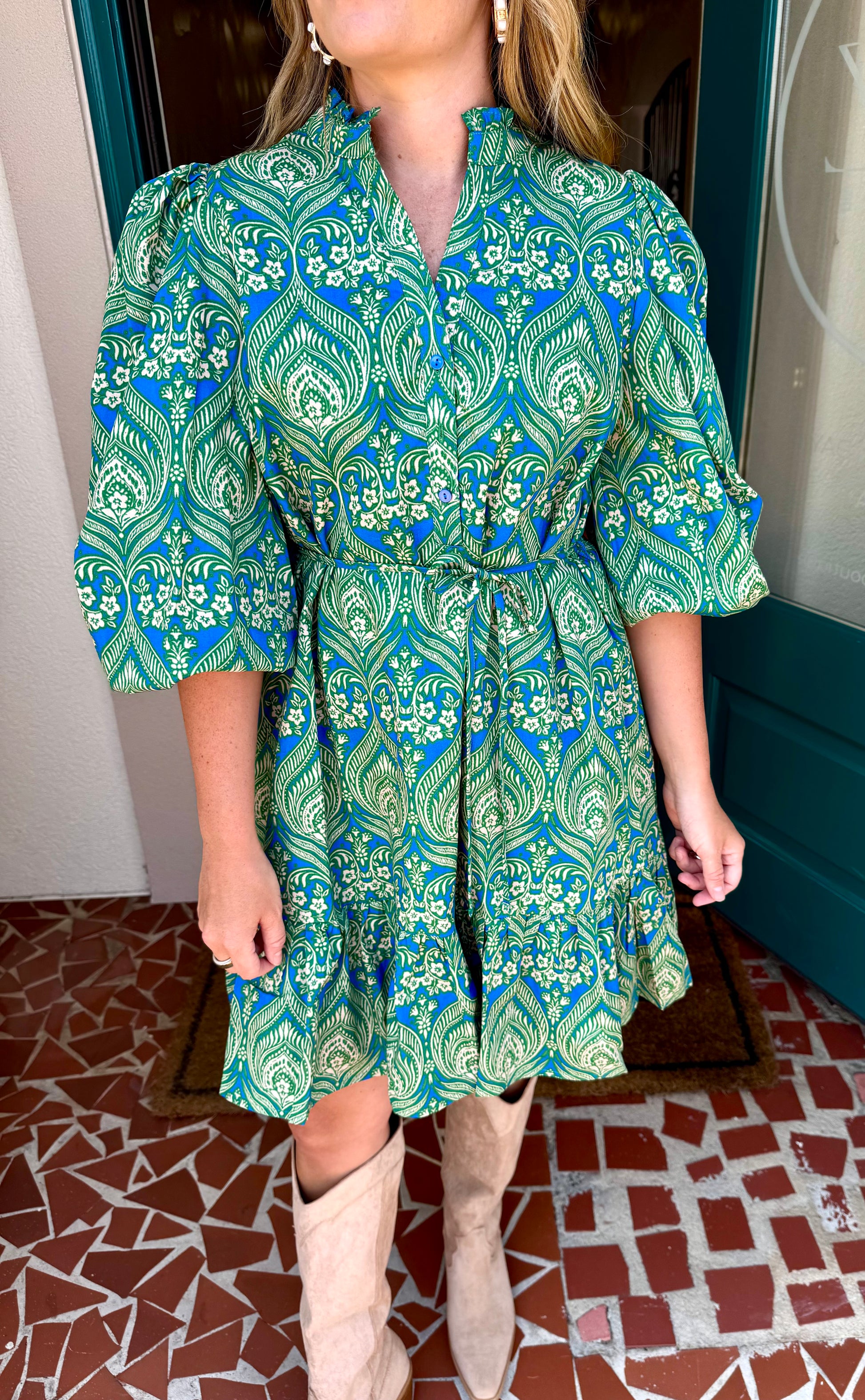 Nyra Paisley Jazlyn Split Neck Dress