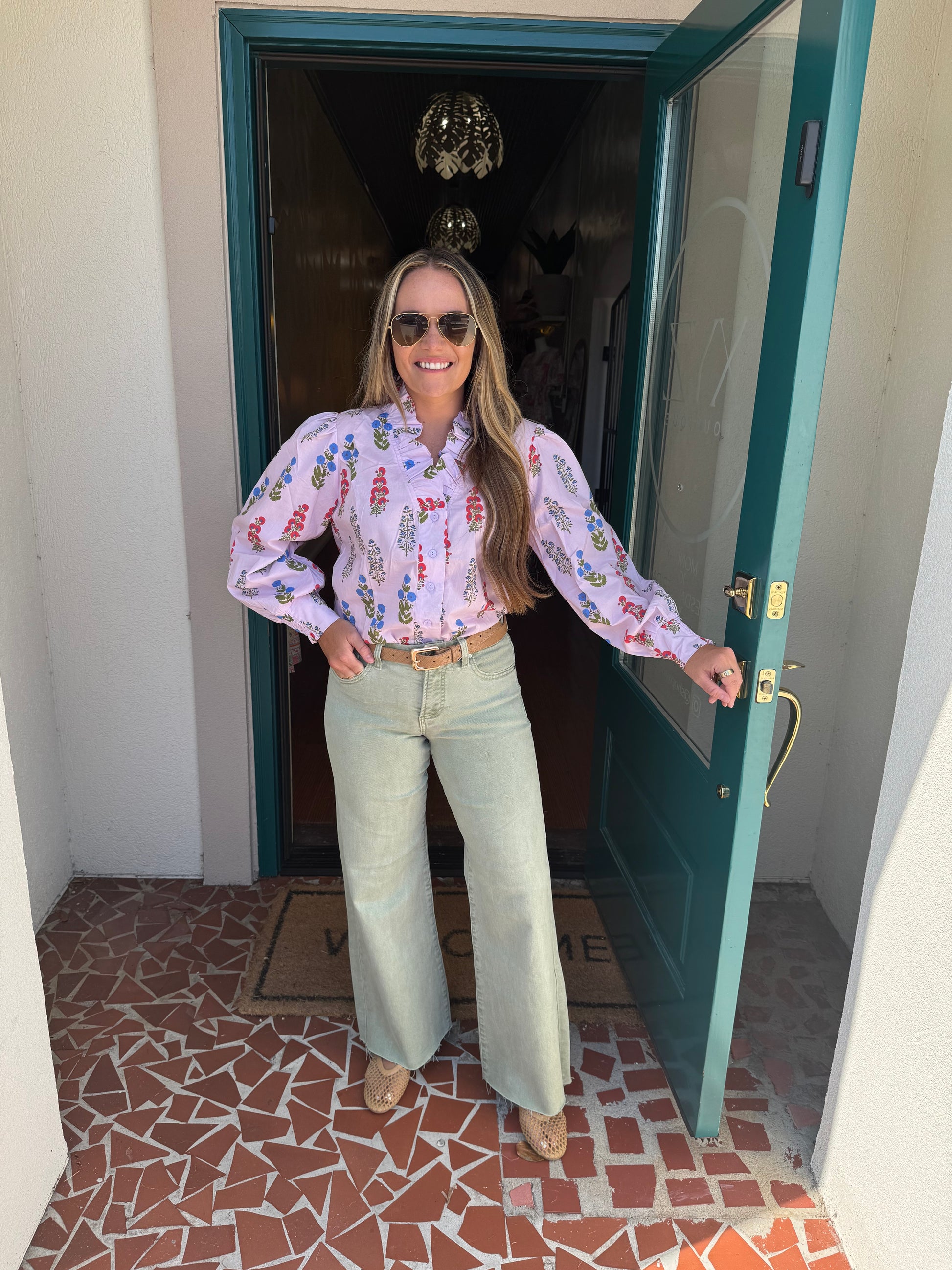 Olive Tummy Control Mid Rise Wide Leg Pants