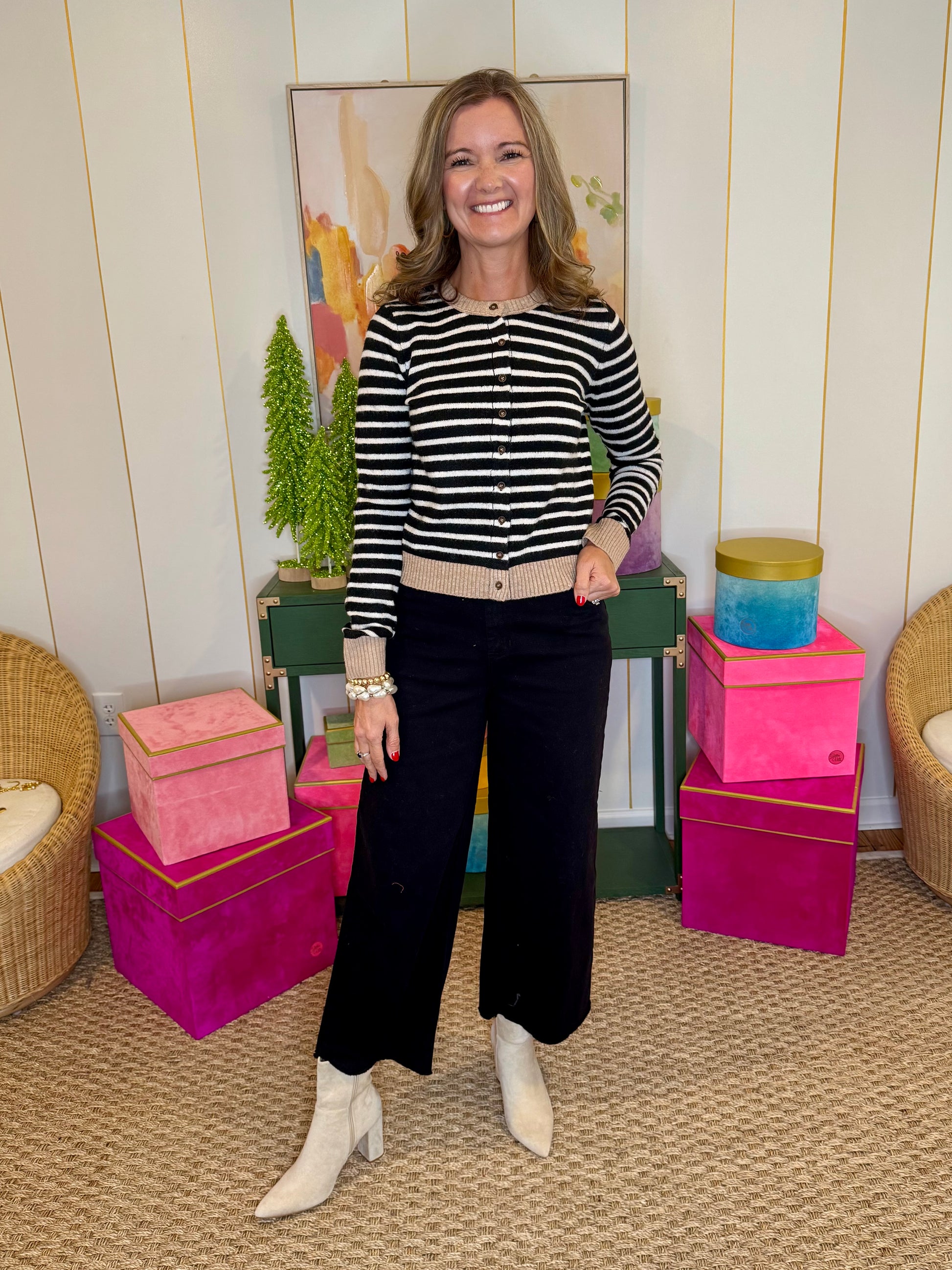 Stripe Colorblock Trim Button Down Knit Cardigan
