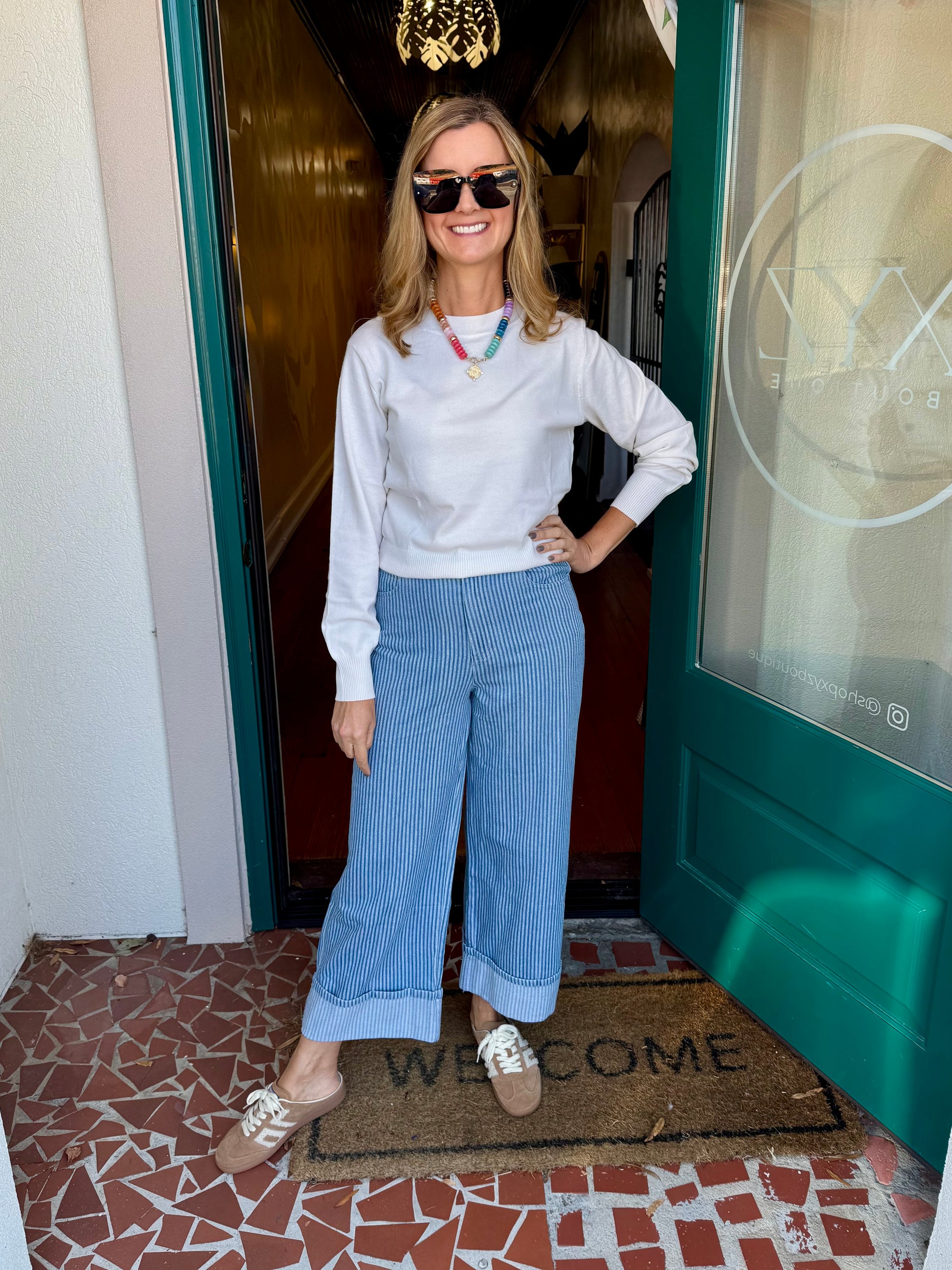 Stripe Pattern Mid-Rise Ankle-Length Denim